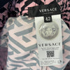 This is an authentic Versace Women's Bermuda Shorts Pink Black in Size 42, featuring a striking geometric black print, SIGNATURE Versace logo, and a back pocket.