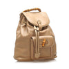 Bamboo Drawstring Leather Backpack Brown