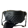 Celebrate in style with this Chanel Black Belt Bag. This stylish waist bag is finely crafted of diamond-stitched black leather and features an adjustable strap that can be worn on the shoulder or around the waist.