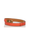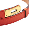 This Hermes Kelly belt features a leather body and a gold-tone buckle closure.