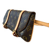 This is an authentic Vintage Louis Vuitton Pochette Marelle PM Monogram in Brown. This stylish belt/Fanny bag is crafted of traditional monogram on toile coated canvas. It features gold hardware and a flap with vachetta belts. The flap opens to a fabric interior with a patch pocket.