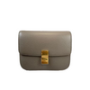 This Celine Calfskin Classic Box bag is crafted from fine leather in grey with a structured and spacious silhouette. The bag details a waist-length shoulder strap and a facing flap with a gold-colored press-lock. A perfect match for your daily outfit!