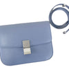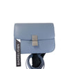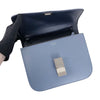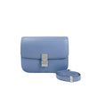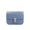 This Celine Calfskin Classic Box Bag is crafted of calfskin leather in blue with a structured and spacious silhouette. The bag details a waist-length shoulder strap and a facing flap with a silver-coloured press-lock.