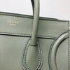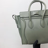 This Celine Mini Luggage in Almond is a stylish bag with rolled leather handles, a gold-tone front zipper with sturdy and sleek trim. The interior is made of leather and has a zipper and patch pockets. It has a zipped closure and protective studs on the base.