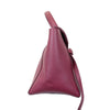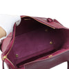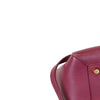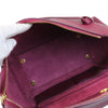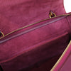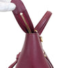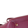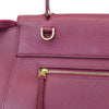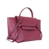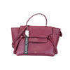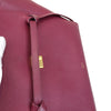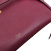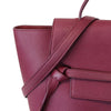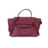 This Celine Mini Belt Bag is crafted of calfskin leather in burgundy with a structured and spacious silhouette. The bag details a leather strap top handle, optional shoulder strap with brass hardware, and a front-facing flap that is decorated by knotted straps.