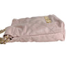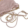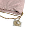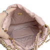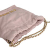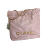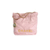 This is an authentic Chanel 22 Mini Shiny Calfskin Quilted in Light Pink. This chic bag is crafted of calfskin leather. The bag features a leather threaded aged gold chain link shoulder strap joined to a thin rolled leather strap, a leather threaded chain link handle, an aged gold medallion, and the Chanel logo in gold. The bag opens to a fabric interior with a flat pocket.