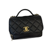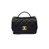 This is an authentic Chanel Business Affinity Flap Small Caviar Quilted in Black. This bag is made of grained caviar calfskin leather. The shoulder bag features a sturdy black leather top handle, a polished light gold chain link leather threaded shoulder strap with a shoulder pad, a rear patch pocket, and a gold CC turn lock closure. This opens the flap to a burgundy fabric interior with zipper and patch pockets.