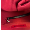 This is an authentic Chanel Small Gabrielle featured in chevron stitched aged calfskin leather in black with a sturdy smooth black calfskin base. This bag features thin dark silver and gold toned chain link black leather threaded shoulder straps with a shoulder pad. The top zipper opens to a spacious red fabric interior with zipper and patch pockets.