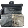 This Chanel Medium Two Tone Snakeskin in Black and Grey Colour bag is a perfect size allows you to carry your essentials without compromising on style. The blend of black and grey snakeskin leather exudes sophistication, ensuring you make a bold statement with every step you take.