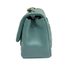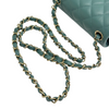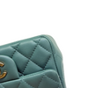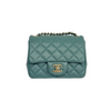 This is an authentic Chanel Square Flap Mini Lambskin Quilted in Green. This chic petite mini bag is made of lambskin leather. It features a light gold chain link leather threaded shoulder strap and a light gold CC turn lock. The front flap opens to a leather interior with pockets.