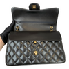 This black Jumbo Chanel double flap lambskin handbag with gold hardware is a classic combo. It is the perfect size to fit all of your daily needs and essentials. The black colour can go with any outfit and style, making this piece your everyday bag.