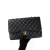 This Chanel Classic Jumbo Flap is as Iconic as a bag can get. It features the durable black diamond-quilted Caviar Leather adorned with a gold hardware combo. It also features the leather and gold chain link shoulder strap which can be worn long or short. The interior is the perfect size to fit all of your daily needs and essentials with one large compartment. Slay in this like new iconic and timeless piece.