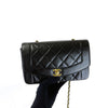 Introducing the rare and classic Chanel Diana flap bag. Crafted from black quilted lambskin leather, and a flap top secured with a CC twist lock. The interior is lined with Chanel's signature deep red leather and houses two convenient pockets.