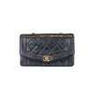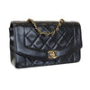 Introducing the rare and classic Small Chanel Diana flap bag. Crafted from black quilted lambskin leather, and a flap top secured with a CC twist lock. The interior is lined with Chanel's signature deep red leather and houses two convenient pockets.