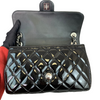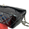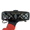 This stunning Chanel Flap in Quilted Patent Leather with Silver Hardware is a popular and sought-after bag. Featuring Chanel’s iconic woven chain strap with padded leather, which can be worn crossbody or doubled up for a shoulder option. The perfect patent leather bag in black is a perfect match to any outfit, and can easily be worn on any occasion. Don’t miss your chance to own this beauty!