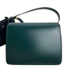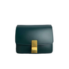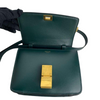 This Celine Classic Box Mini Calfskin GHW is crafted of calfskin leather in a luxurious Dark Green colour with a structured silhouette and spacious interior. The bag has a waist-length flat strap so you can sport this bag as a crossbody or shoulder bag.