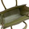 This Celine Nano Luggage Tote in army green is a stylish bag and one of the most popular designer handbag styles. It features rolled leather handles, a gold-tone front zipper. The interior is made of suede and has a zipper and patch pockets. So carry on with your day in sleek and sturdy structured elegance. Effortlessly go from work to shopping to cocktails with this classy and chic tote.