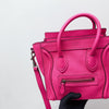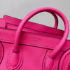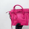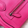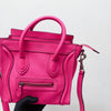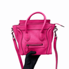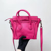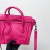 This Celine Nano Luggage Tote is a stylish bag and one of the most popular designer handbag styles. It features rolled leather handles, a gold-tone front zipper. The interior is made of leather and has a zipper and patch pockets. The bag has a zipper closure and protective studs on the base.