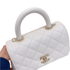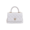 This Chanel Quilted extra mini Coco Handle Flap bag is a unique and elegant piece. It features a Caviar leather exterior and a leather top handle. Wear this as a top handle or a shoulder bag.
