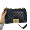 Le Boy Small Caviar Black GHW Quilted Chevron