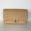 Single Flap Jumbo in Beige Caviar with SHW