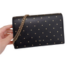 Be the star of your own show with this Dior Star printed Wallet on Chain! Crafted in a beautiful calfskin leather in black, it's the perfect accessory for any outfit. It can be worn as a crossbody with its gold-toned chain strap for your all-day shopping trips, or tuck the straps in and don it as a chic clutch for date night.  These luxury pieces do not skimp on versatility!