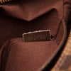 This Louis Vuitton messenger bag is crafted of classic damier ebene canvas. It features an adjustable dark brown nylon strap and brass hardware. The bag has two flaps with top snap closures that opens to reveal two large side pockets and a central zipper opening to a large brown fabric interior. This is an ideal messenger bag, perfect for your everyday necessities.