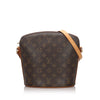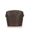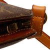 This stylish Louis Vuitton shoulder bag is crafted of monogram-coated canvas. It features vachetta cowhide leather trim including the base, and an adjustable shoulder strap with brass hardware. The top zipper opens to a terra cotta cross-grain leather interior with a patch pocket. This is a splendid shoulder bag with enough room for everyday necessities.