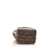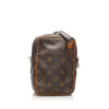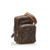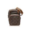 The Louis Vuitton Amazone bag features an exterior zipper pocket, vachetta cowhide leather trim base, and corners. An adjustable Monogram canvas shoulder strap, and brass hardware. The primary zipper opens to a brown cross-grain leather interior. This is an excellent shoulder bag for everyday essentials.