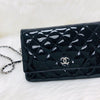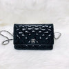 Wallet on Chain WOC with SHW in Black Quilted Patent Leather