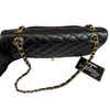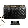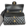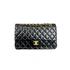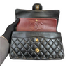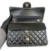 This Chanel Classic Medium double flap bag is crafted in diamond-quilted soft black lambskin leather featuring a CC turn-lock and a gold hardware chain.