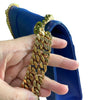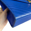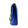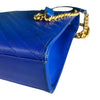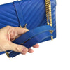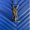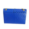 This Saint Laurent Large Envelope bag features a front flap adorned with the brand's signature interlaced YSL initials in Gold-Toned Hardware, a gold chain, and leather strap, and beautiful grained electric blue grained leather with chevron-quilted stitching. The interior features a zippered pocket perfect for all of your essentials.