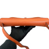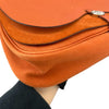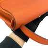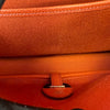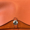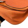 This is an authentic Hermes Colorado MM Vache Liegee Toile Sac in Potiron. This stylish hand bag is crafted of dark orange leather and fabric. It has an aged calfskin strap, and the back crosses over to a flap revealing a suede interior closed with a silver clasp. The flap opens to a fabric interior with a patch pocket.