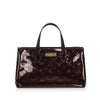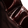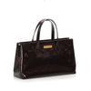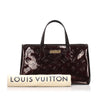 The Louis Vuitton Wilshire PM features a Vernis leather body, flat handles, a top lobster claw closure, and an interior zip pocket.