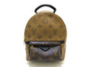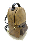Mini Palm Springs backpack from Louis Vuitton, featuring a monogram pattern, gold-tone hardware, a round top handle, detachable and adjustable back straps, a top zip closure, an internal slip pocket, an internal logo patch, a front zip pocket and a front logo patch.