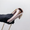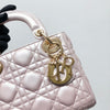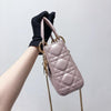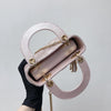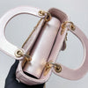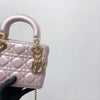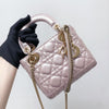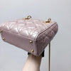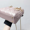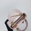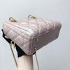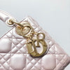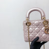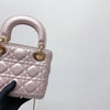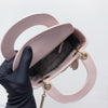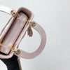 A fine mix between timeless and modern, the Mini Lady Dior Bag is a star in the making. This pearly pink bag has been crafted from leather and it carries the signature Cannage quilt. It features a fabric interior, two top handles, and a detachable shoulder strap. The gorgeous piece is complete with the classic Dior letter charm.