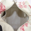This cream and pink Balenciaga 'Bazar Shopper' tote bag is a feminine and chic utilitarian market bag in dreamy, flower-scattered silk. It is crafted from silk with cream calfskin leather trim and a top two-way zip fastening. The interior has a black cotton canvas lining and has 1 zip and 1 patch pocket with Balenciaga embossed tag inside. It has an embossed gold Balenciaga logo on the front.