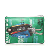 Balenciaga Magazine Print Leather Clutch Bag Green