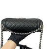 This Chanel Boy bag in black caviar leather features beautiful ruthenium hardware. It can be worn either as a shoulder or crossbody bag. You do not want to miss the chance to own this!