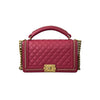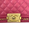 This Boy bag features a beautiful quilted calfskin body, gold hardware, and a convenient top handle for easy carrying. its an absolute must for any luxury lover.  Its red toned pink color makes this a statement bag for everyday wear.  Our advice? Get this piece before it's too late!