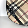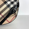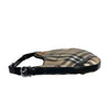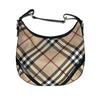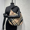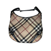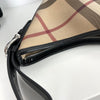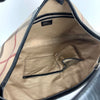 This Burberry Supernova Check Large Larkin Hobo Bag features a canvas body with leather trim, a flat leather handle, a top zipper that opens to a brown fabric interior with zipper and patch pockets. This size makes it the perfect gym, travel, or work bag.
