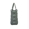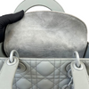 The Lucky Badges My Lady Dior Small is a feminine, stylish tote crafted of the hallmark cannage quilted lambskin leather in grey. The rolled reinforced leather handles provide sturdy carrying, while the embellished strap adds versatility and comfort. The bag features ggrey hardware and a top inner flap that opens to a classy interior in grey fabric. The Charms can be interchanged with newly chosen charms sold separately at the Dior boutique.