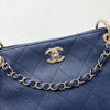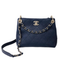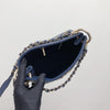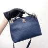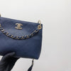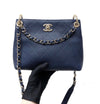 What happens when you mix elegance and distinction, plus a dash of iconic? You get this Chanel Caviar Hobo Bag. Crafted in a rich navy blue tone, with intricate exterior quilting and classic "CC" Chanel signature turn lock clasp. It’s beautiful strap woven chain and sleek silhouette make this bag perfect for the day or night. Also features an interior zipper pocket.