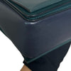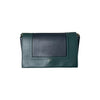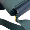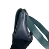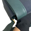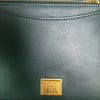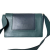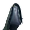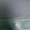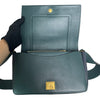 This is an authentic Celine Frame Amazone Medium Shoulder Calfskin in Navy and Green. This shoulder bag is made of calfskin leather. The bag features a green leather shoulder strap and aged gold hardware. The flap opens to a matching leather interior with a zipper compartment and a patch pocket.