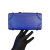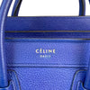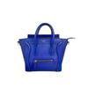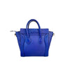 This Celine Nano Luggage Tote in electric blue is a stylish bag and one of the most popular designer handbag styles. It features rolled leather handles, a gold-tone front zipper. The interior is made of suede and has a zipper and patch pockets. So carry on with your day in sleek and sturdy structured elegance. Effortlessly go from work to shopping to cocktails with this classy and chic tote.