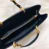The iconic Chanel CC logo is embossed on the front, and a flat pocket is found at the rear for quick stowing of your essentials. The interior has a black fabric lining with a central zipped partition separating the compartments, as well as a patch and zipper pockets. This bag’s organized storage system makes it perfect for work, shopping, and even your day or night socials. Be Practical and yet stylish in Chanel!