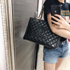 The Chanel Black Grand Shopping Tote is crafted from classic caviar leather with diamond quilting. It features leather-threaded polished gold chain-link shoulder straps with shoulder pads that accentuates the black shade of the bag.