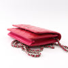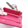 This Chanel Patent Pink Wallet on Chain features a flap enclosure to maximize space and increase security for your items. Adorned with iconic Quilted leather, this WOC is a nod to Chanel's classic chic style. Snatch up this rare find for a fraction of retail price! This WOC retails $3500CAD, get it here for $2450CAD.