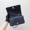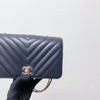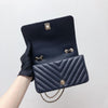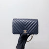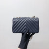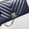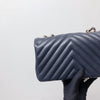 Calfskin Chevron Quilted Mini Statement Flap Navy Blue