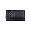 Cambon Gusset Flap Wallet Calfskin Quilted Black SHW